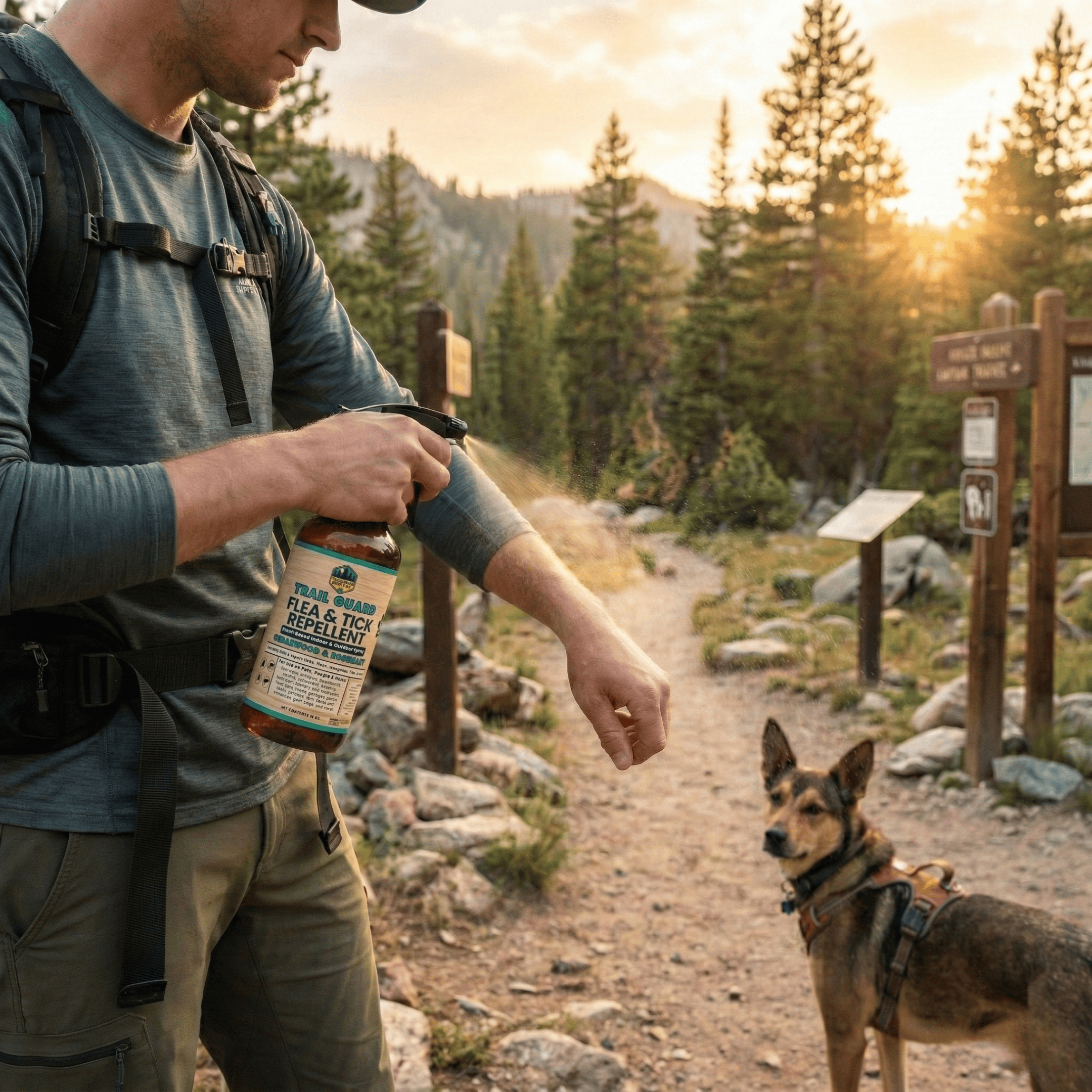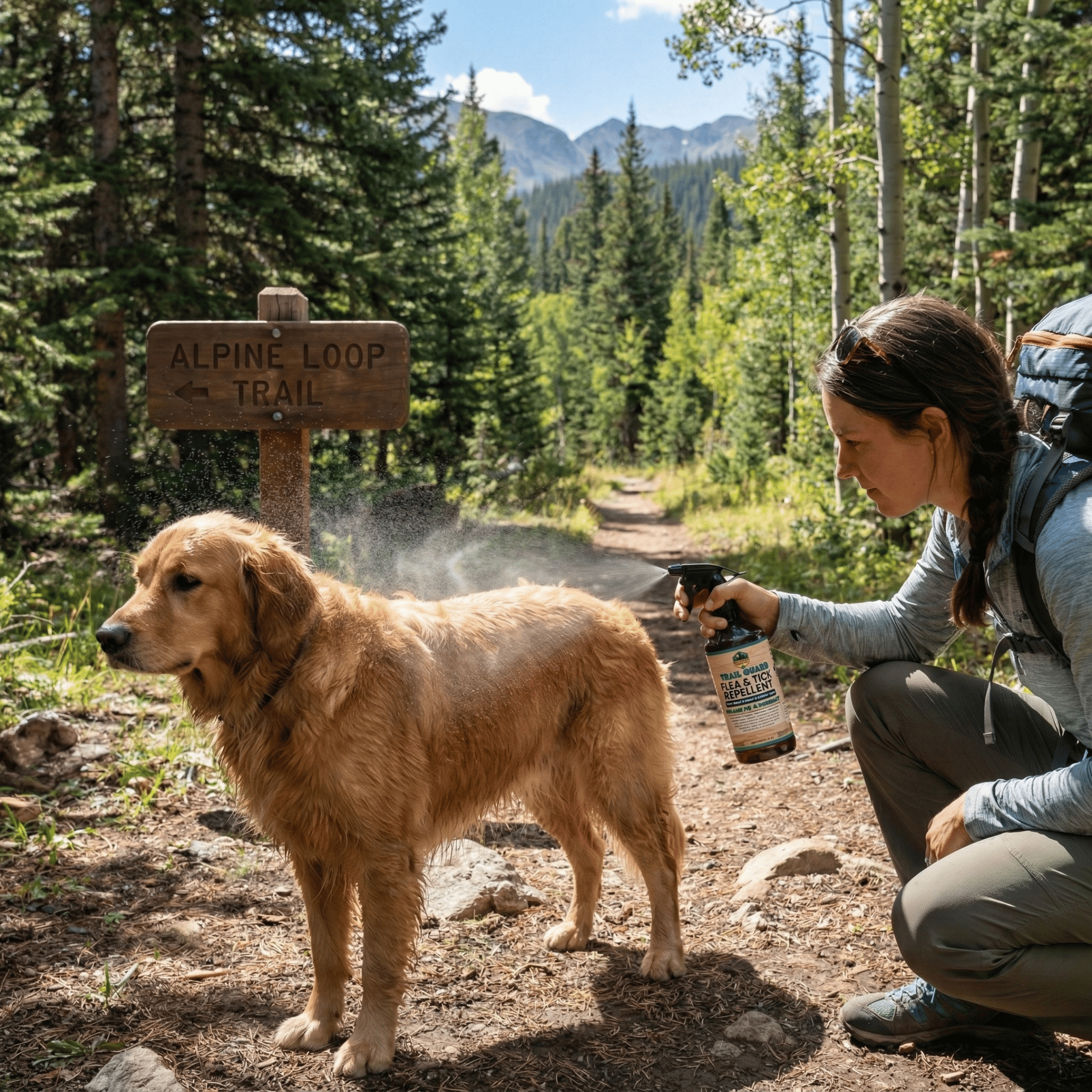Shake + pre-spray first: Give the bottle a good shake, then apply 5–10 minutes before heading out—hit legs, belly, chest, and base of tail.